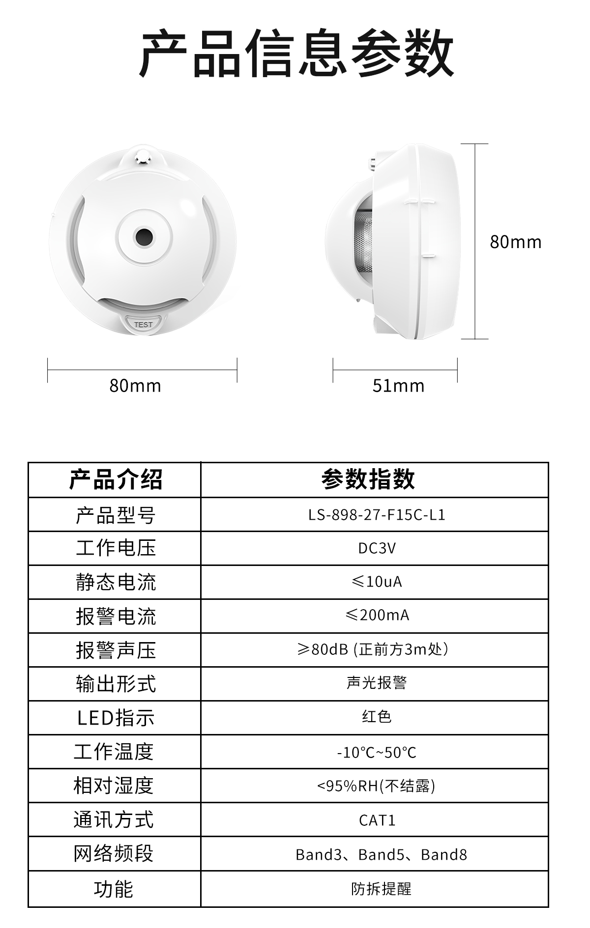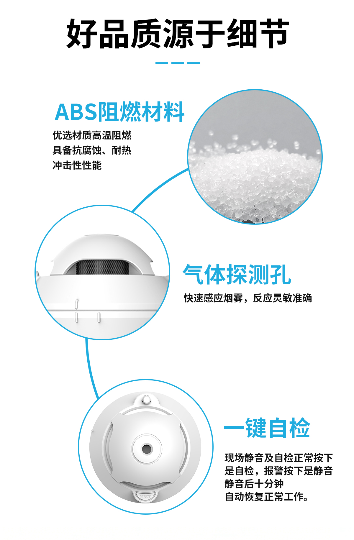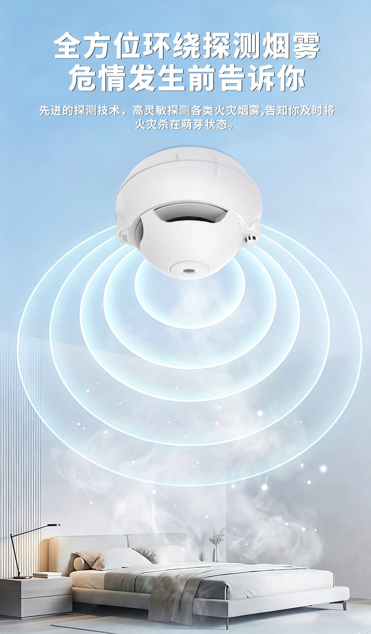 火灾烟雾探测灵敏度高,零误报,带防拆功能
