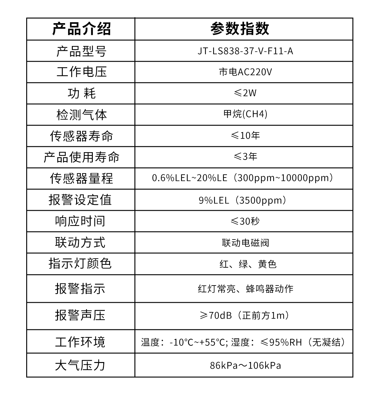 JT-LS838-37-V-F11-A电磁阀型家用可燃气体探测器(NB移动版)说明书