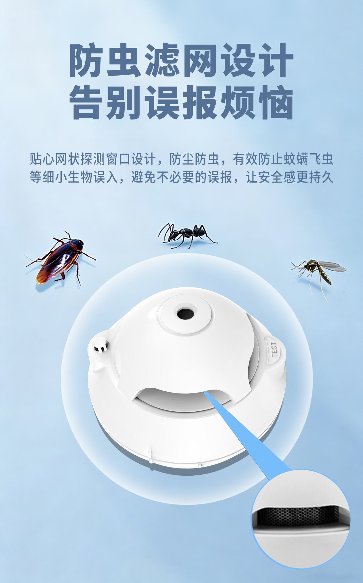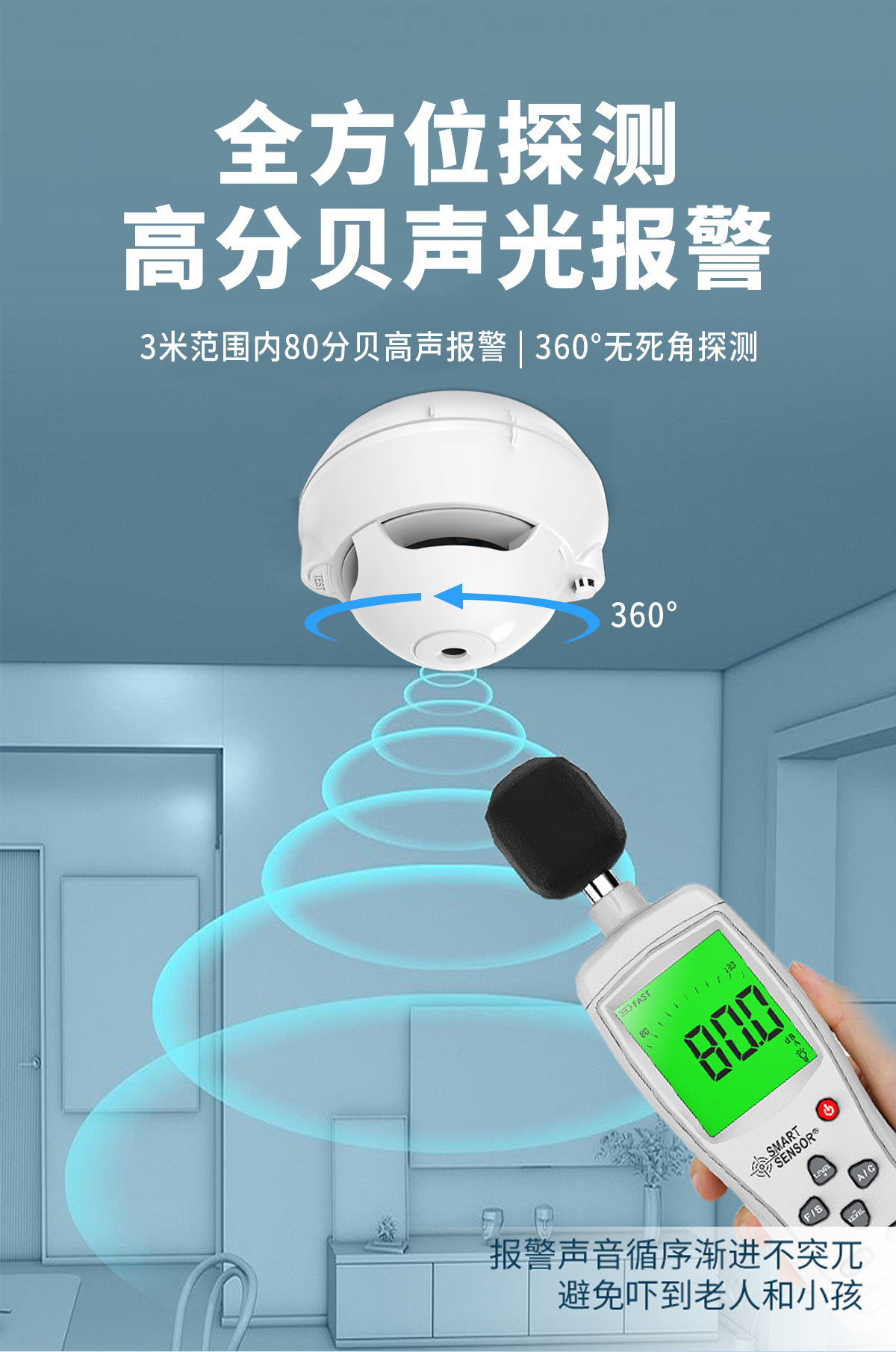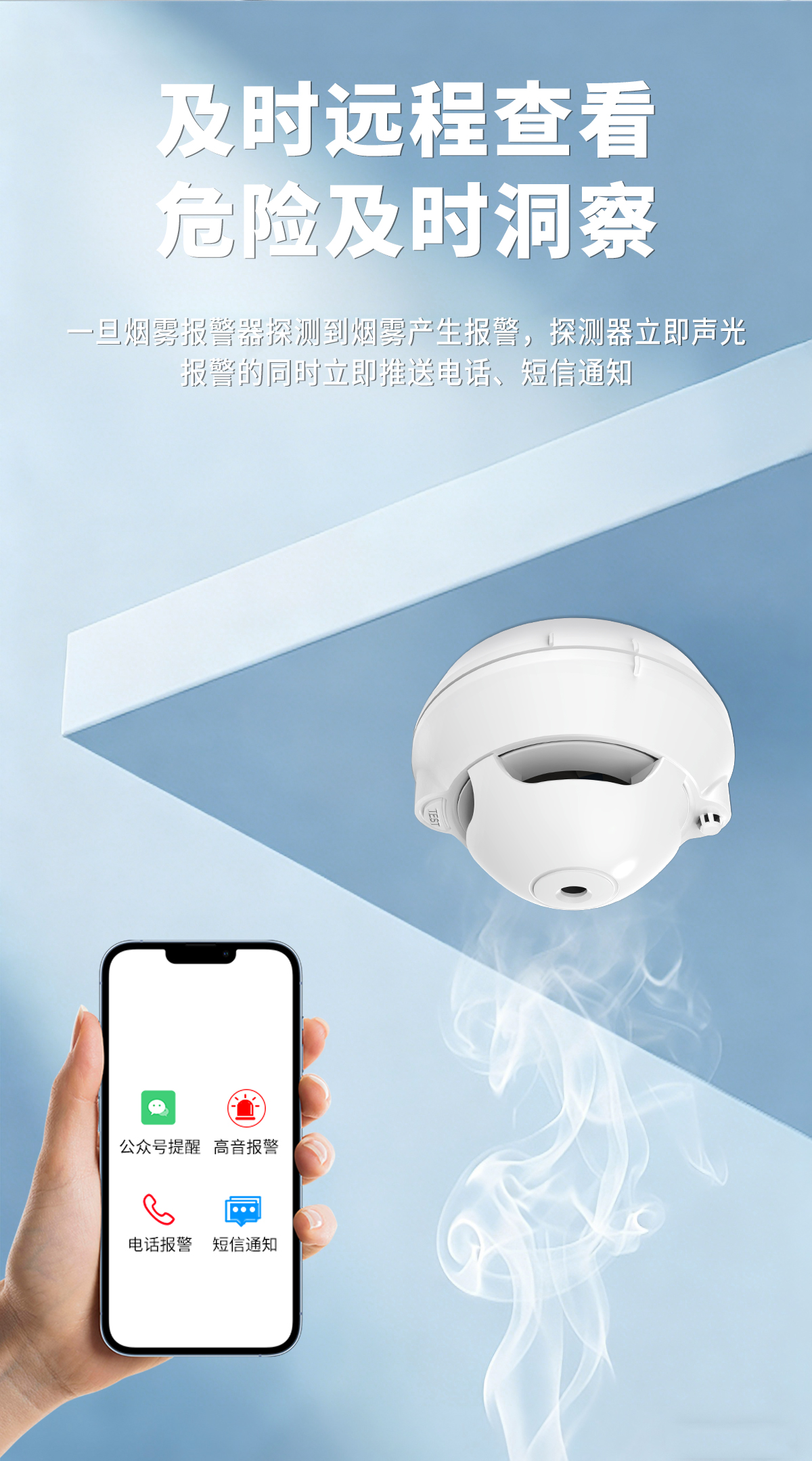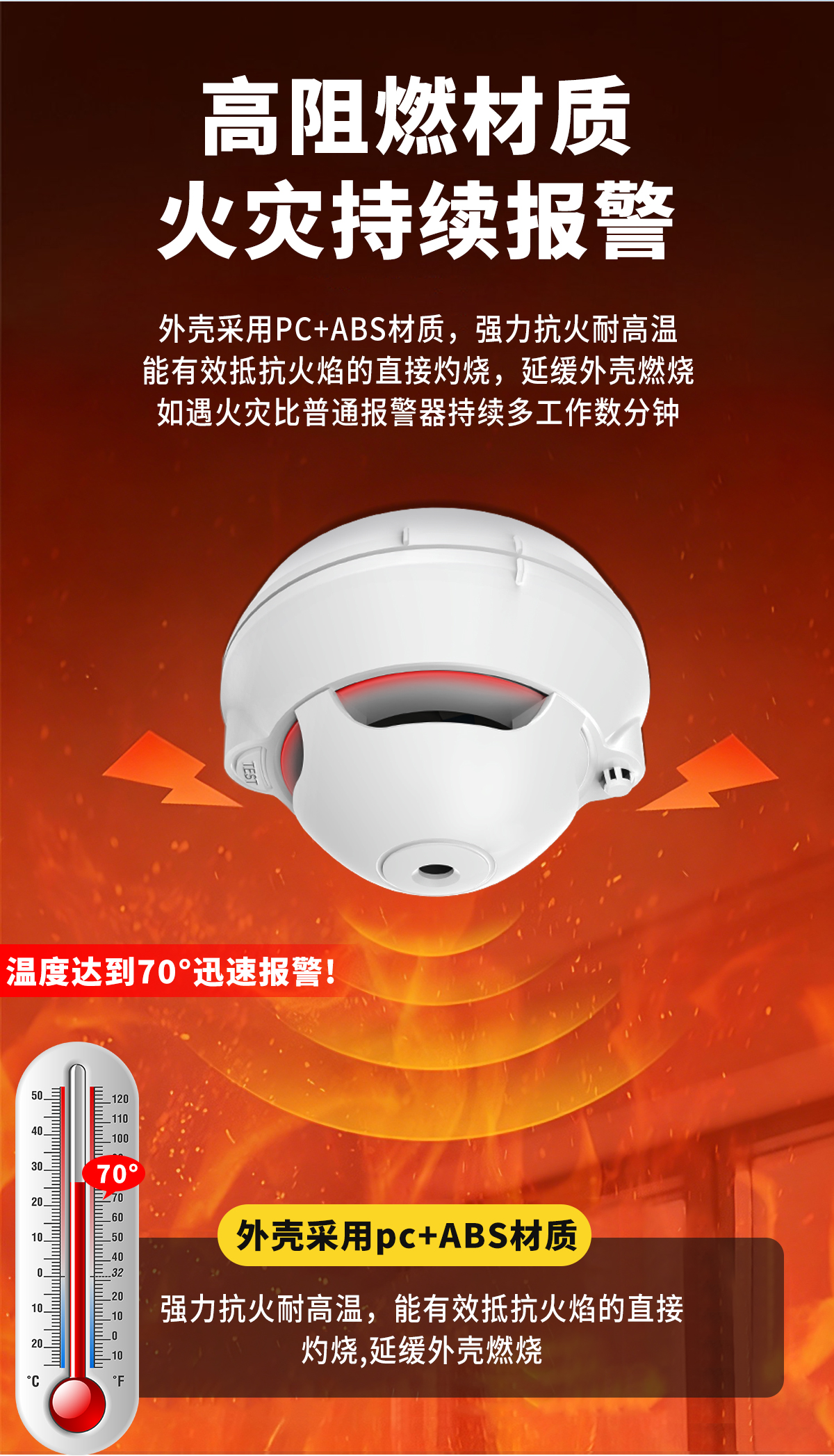 火灾烟雾探测灵敏度高,零误报,带防拆功能